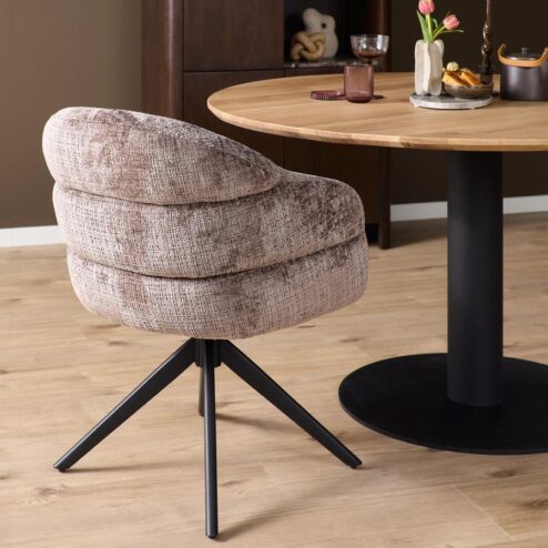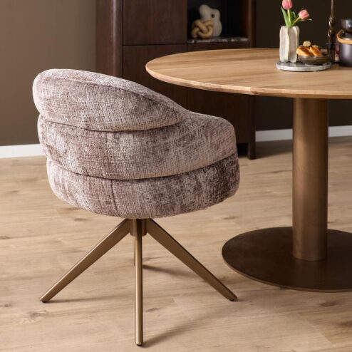 - Chenille eetkamerstoelen: warm, comfortabel en subtiel glanzend. Zoals de Bardi .